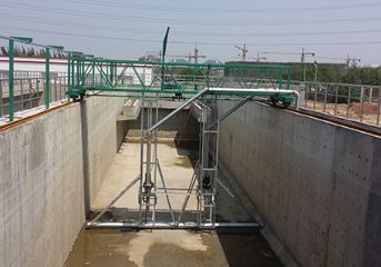 該設備適用于逆向流平流式沉淀池及沉砂池中污泥,砂及浮渣的機械排除,多用于初次沉淀池,逆向流刮泥順流排渣,刮泥機構在不刮泥回程時刮泥耙全部抬起,當回到刮泥的起始位置時,刮泥耙落下。
