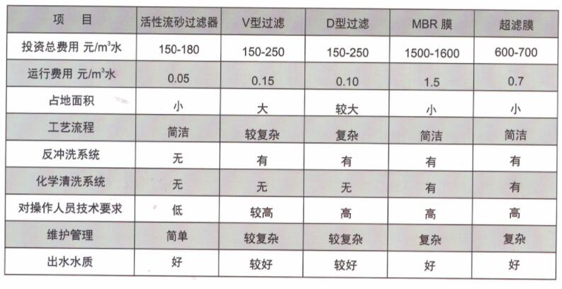 污水深度處理常用工藝投資及運(yùn)行費(fèi)用比較